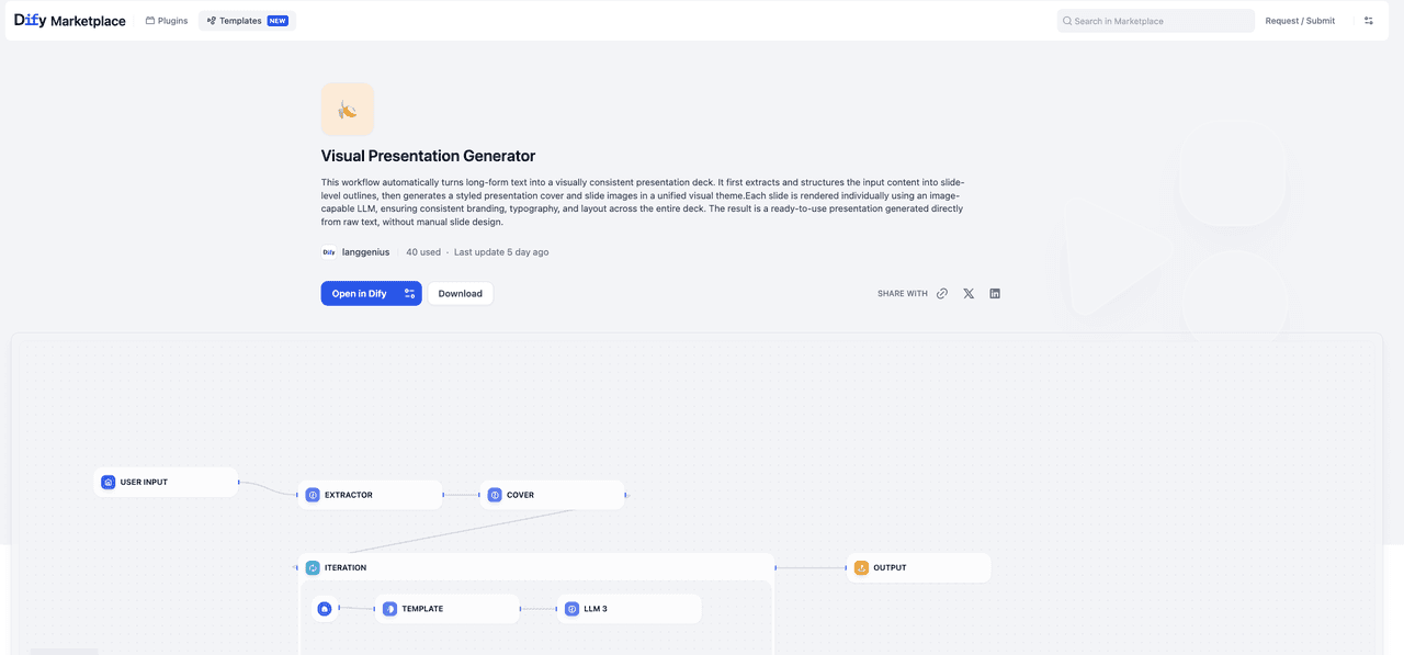 Open in Dify — Adopt the template with a single click, with guided setup steps walking you through configuration.Other Highlights