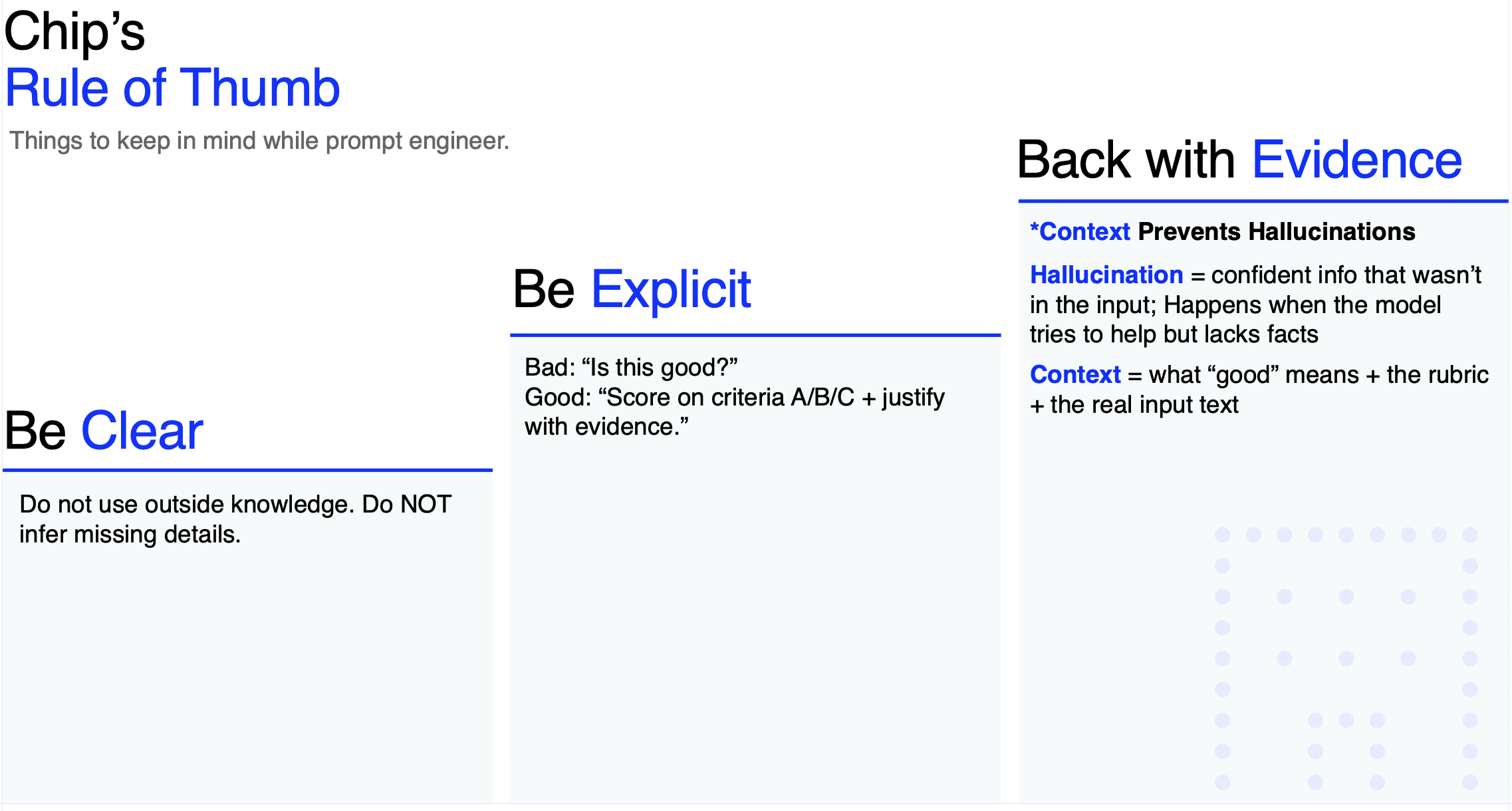 Stop hallucinations early: be clear, explicit, evidence-based