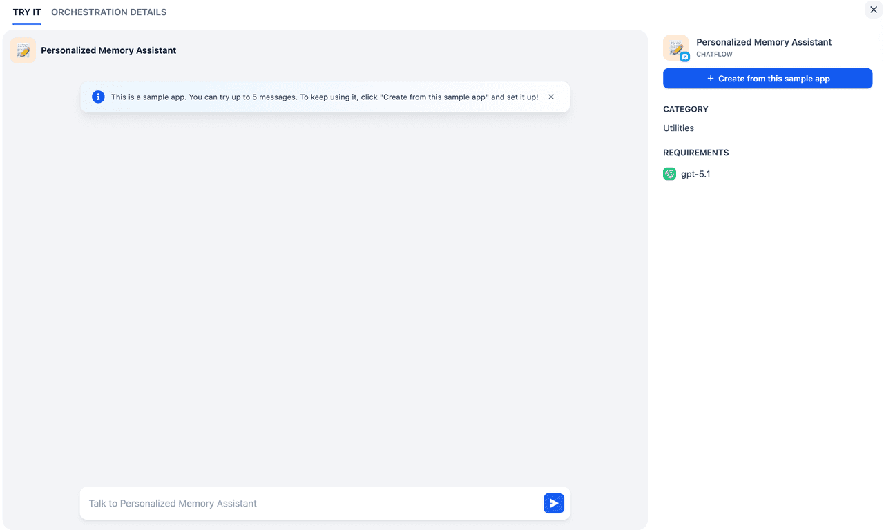 Personalized Memory Assistant | Chatflow | Automatically remembers key conversation details and delivers personalized responses |